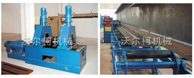 | H型鋼翼緣矯正機 | | | 該機是用于矯正焊接型鋼翼緣板變形的專用設(shè)備, 有機械、液壓矯正二大類。機械式矯正機結(jié)構(gòu)簡單,操作方便可靠。液壓矯正機矯正能力大、自動化程度高,為國內(nèi)首創(chuàng)。矯正輪與主動輥采用優(yōu)質(zhì)合金鋼,熱處理加工而成,經(jīng)久耐用。